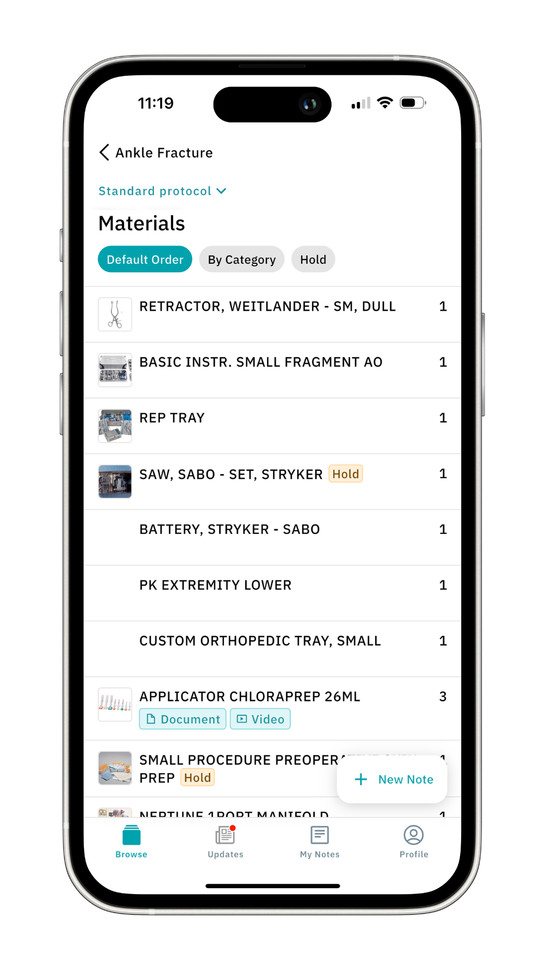 The order of the list is based on your hospital’s preference cards.
