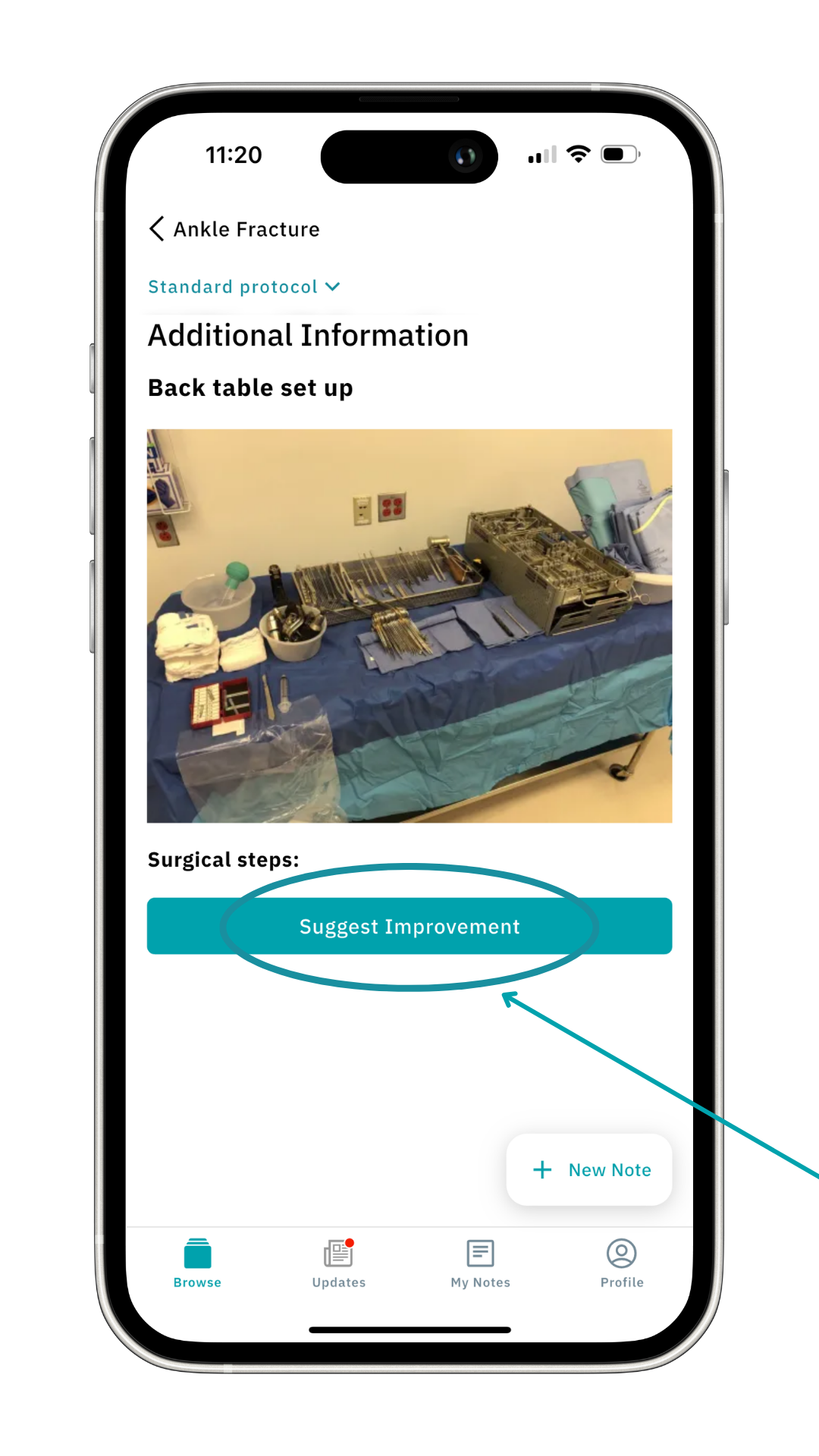 Here you can suggest a change, whether it’s a surgeon’s preference, a material update, or if you’ve spotted a bug in the app.