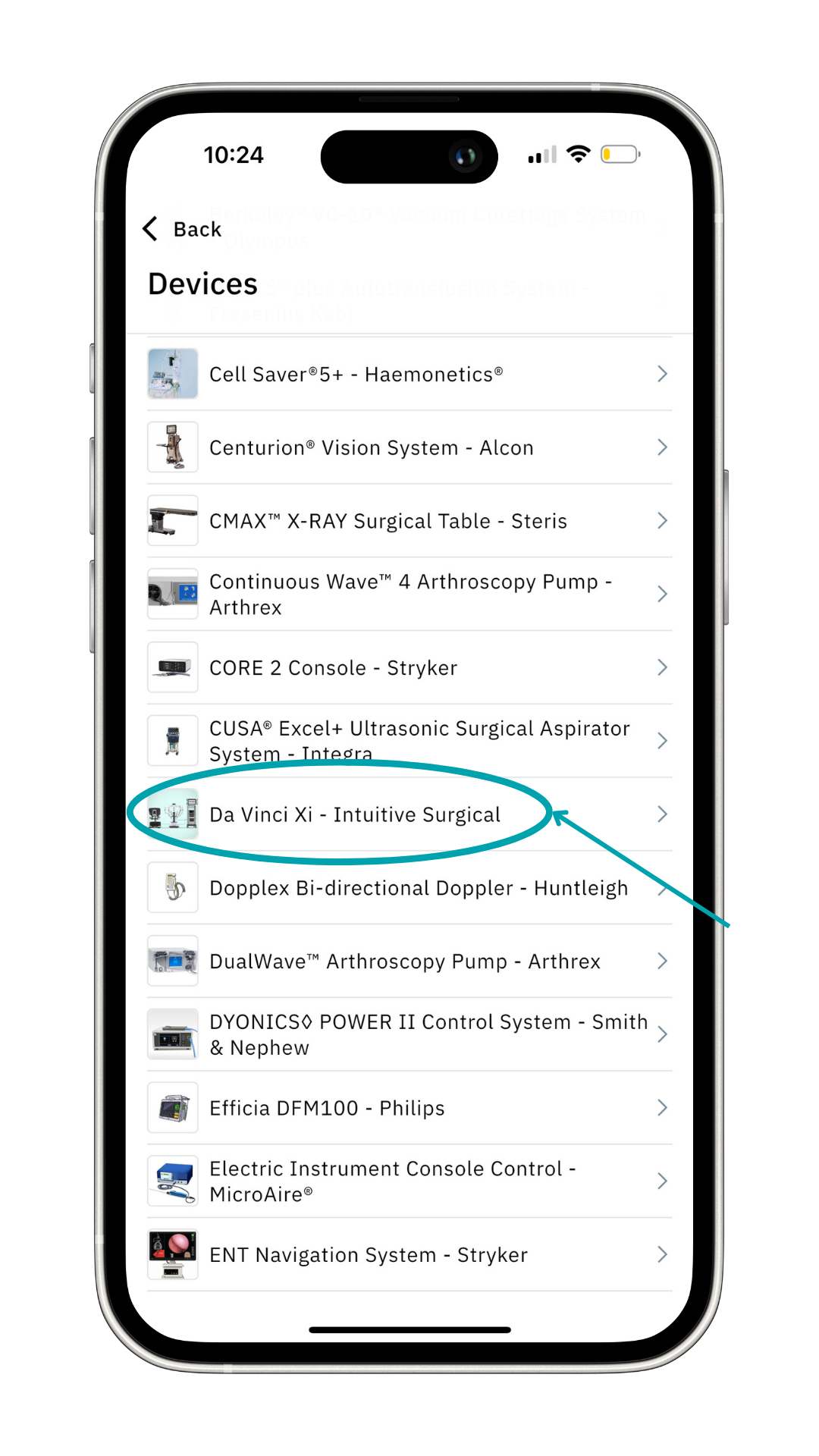 As an example, let’s click on the Da Vinci Xi - Intuitive Surgical device.