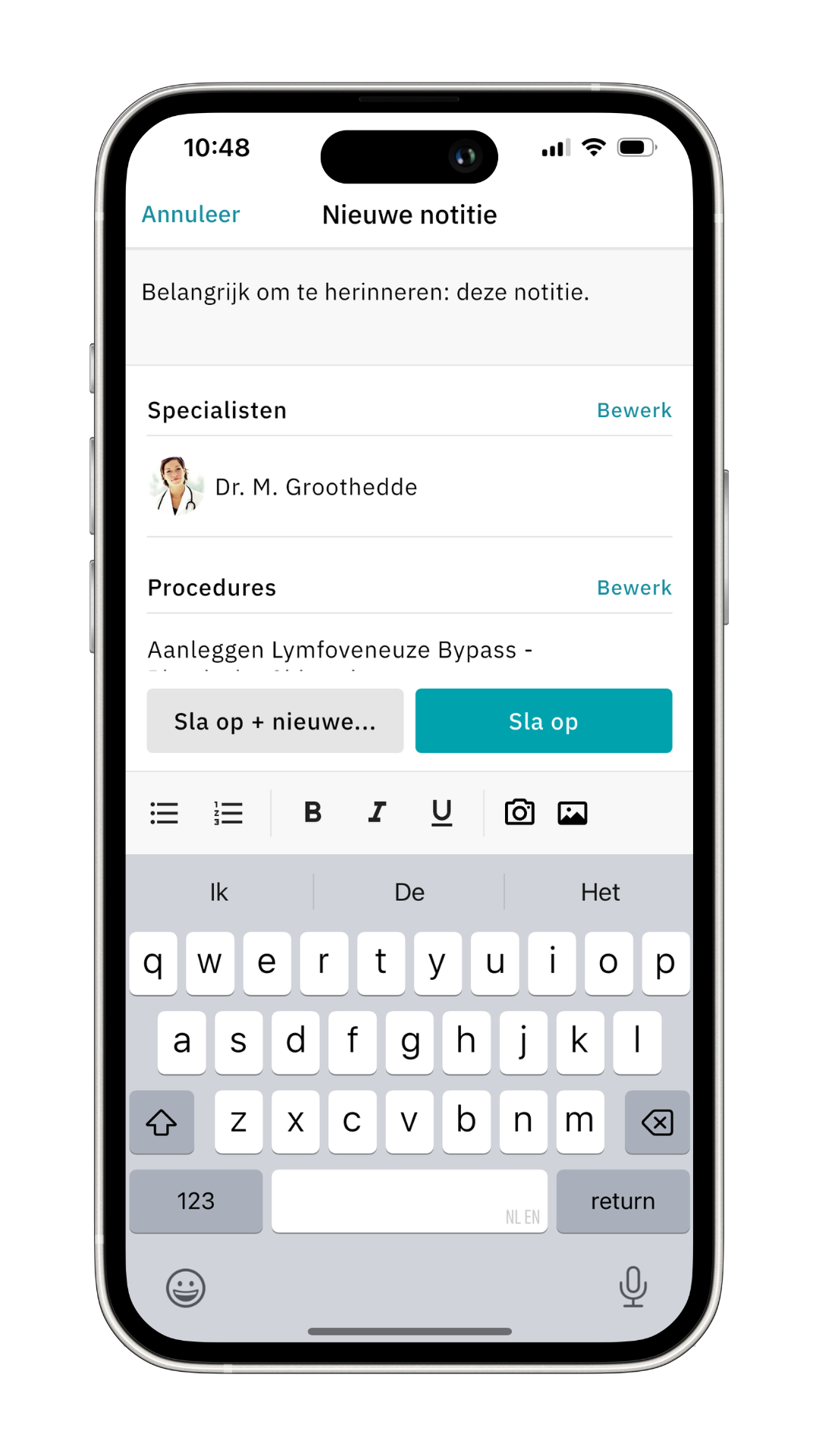Je kunt ook een specialist en een procedure koppelen aan je notitie.