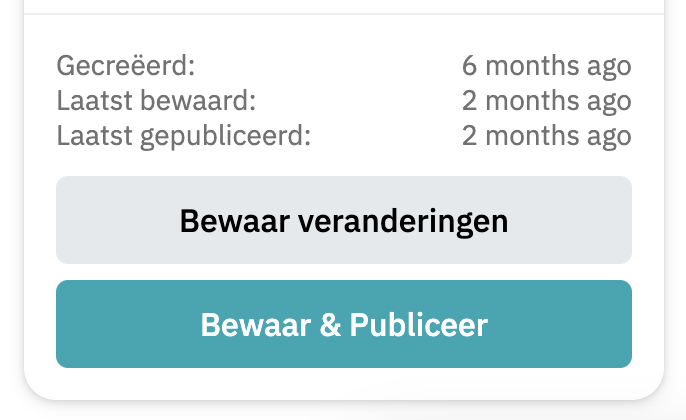 Ben jij een bestaand protocol aan het bewerken, dan zien de bewaarknoppen er als volgt uit. Je kunt niet kiezen tussen alleen opslaan (Bewaar veranderingen) of opslaan en zichtbaar maken in de app (Bewaar & Publiceer).