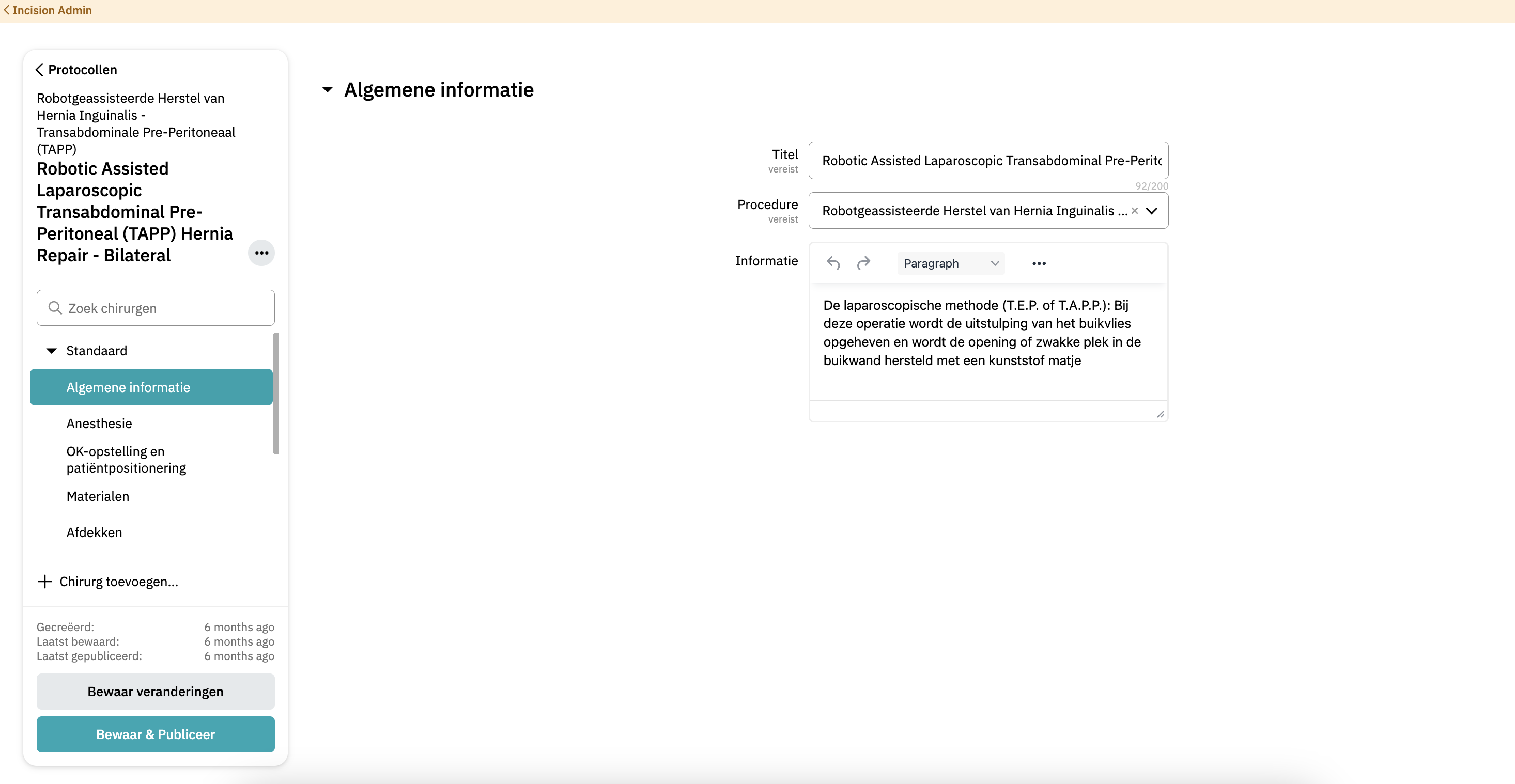 Let op: De velden Titel en Procedure zijn verplicht. Zonder deze velden in te vullen kun je het protocol niet opslaan.