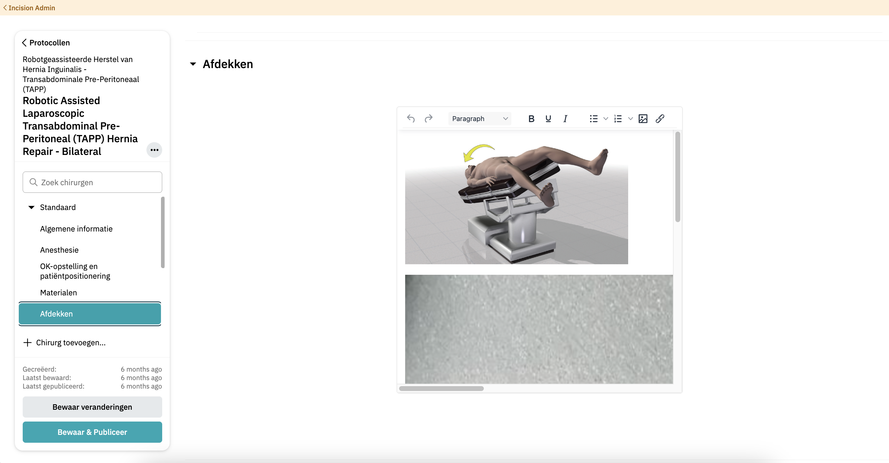 - Wanneer je tevreden bent met de afdekinformatie, klik je op Publiceren om de wijzigingen zichtbaar te maken in de Incision Assist-app.