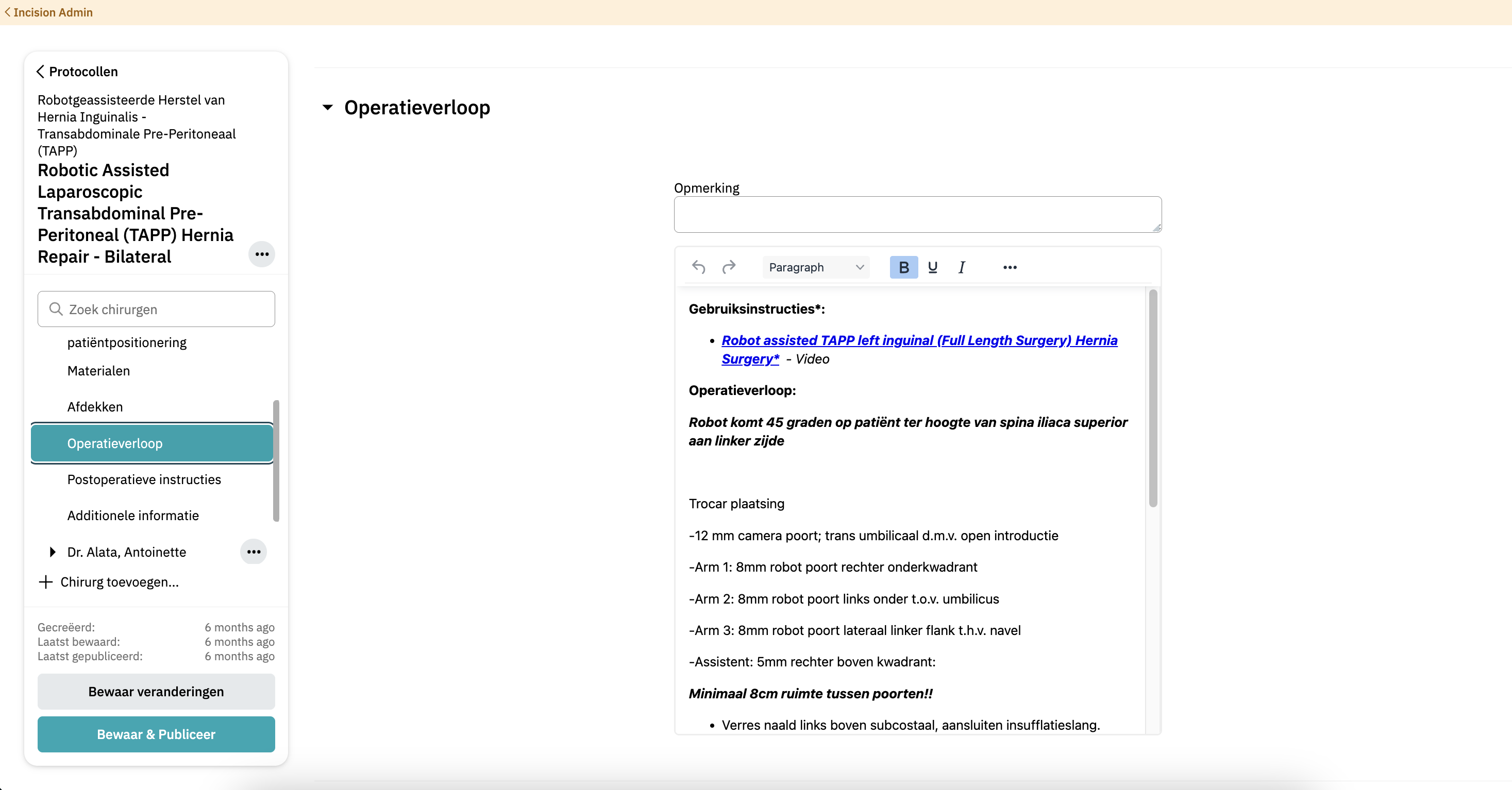 Je kunt afbeeldingen uploaden of koppelingen naar externe documentatie toevoegen om je tekst te ondersteunen. Dit biedt een visuele referentie voor de chirurgische stappen.