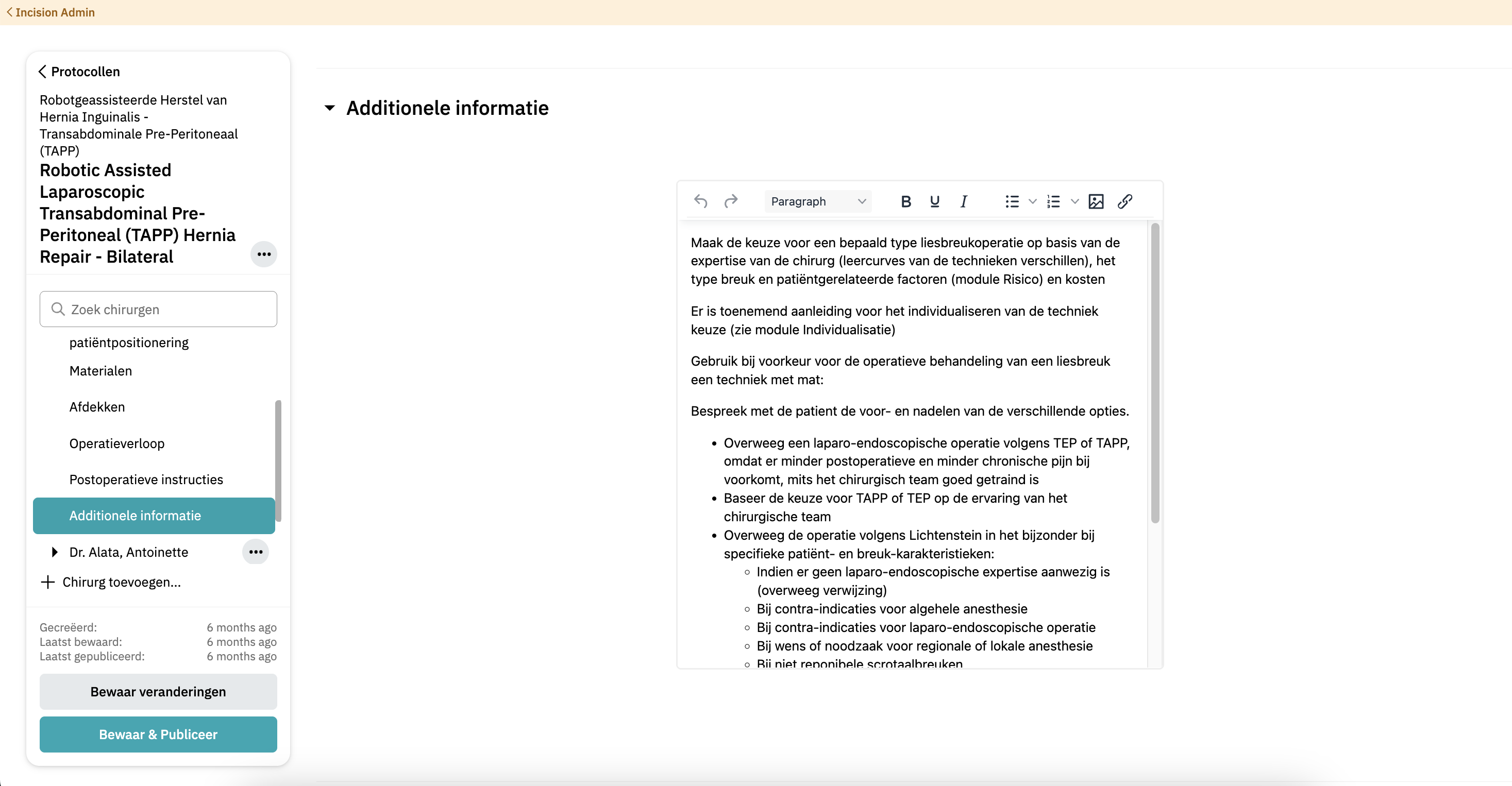 - Wanneer je tevreden bent met de inhoud, klik je op Publiceren om de wijzigingen zichtbaar te maken in de Incision Assist-app.