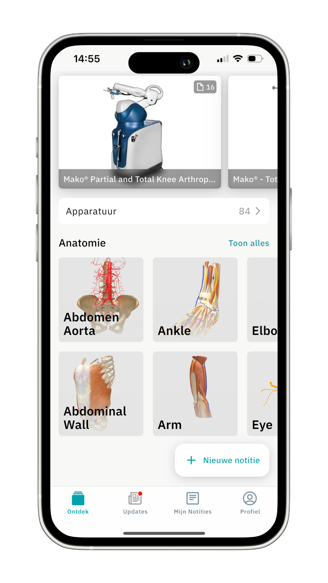 Scroll een stukje omlaag op de ontdek-pagina van de app. Daar zie je de sectie Anatomie.